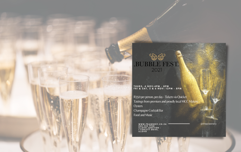 It may be Spring, but it’s beginning to feel a lot like Summer. It’s time to enjoy the warm Sunshine, and cool off with a tall, crisp glass, of ice-cold bubbles and some delectable freshly shucked oysters. Wondering what to do next weekend? Well, wonder no more. The Prawnery, in Illovo Junction, is hosting their first-ever bubble fest, and it’s bound to be a sensorial journey through the most premium MCC’s presently available in South Africa. Think flavoursome canapé’s, the lightest, most premium bubbles from all around the country, feel-good music, a fun-loving, opulent vibe, and more.
