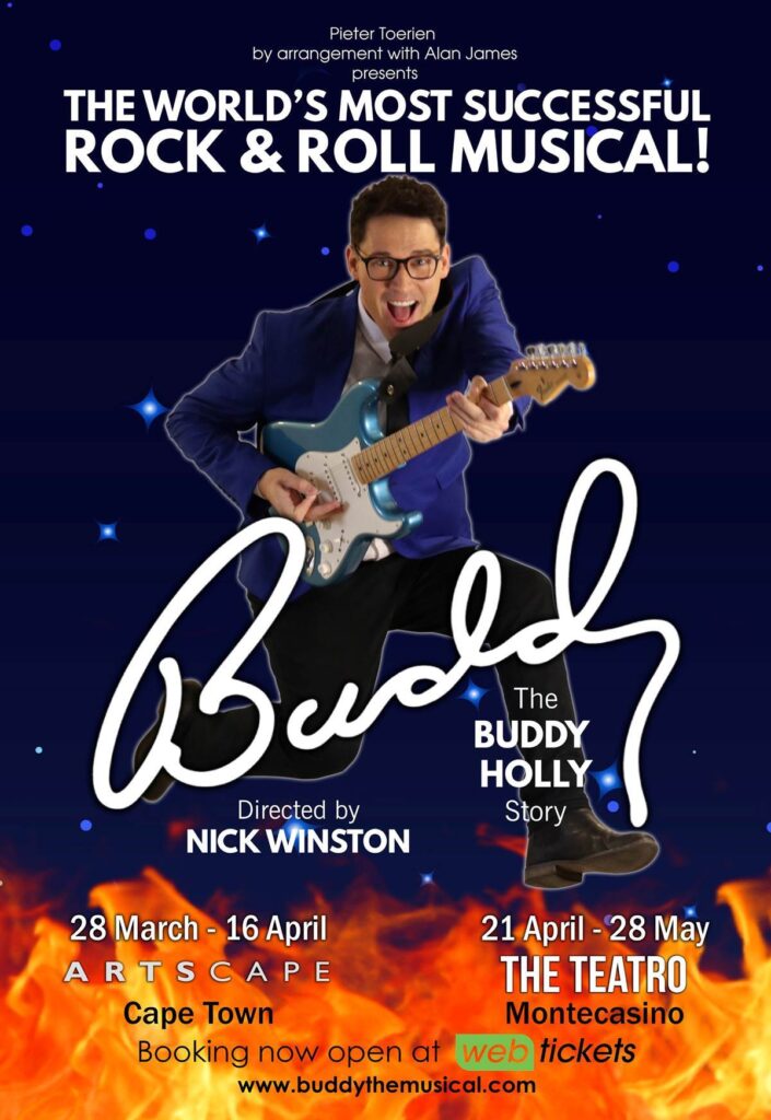 Directed by the West End’s Nick Winston (Fame, CATS, Chess, We Will Rock You – and ANNIE here in SA), with original set and costume designs by Fleur du Cap winner Niall Griffin (Hedwig and the Angry Inch, Joseph And The Amazing Technicolor Dreamcoat), and Musical Direction by Wessel Odendaal (Phantom, Avenue Q, The Sound of Music, Here’s To You – The Simon and Garfunkel Songbook), this truly unique tribute musical follows the incredible journey of Buddy’s meteoric rise to the top of the record charts during the golden days of Rock ‘n Roll… BIGGER and BETTER than ever seen before on South African stages!