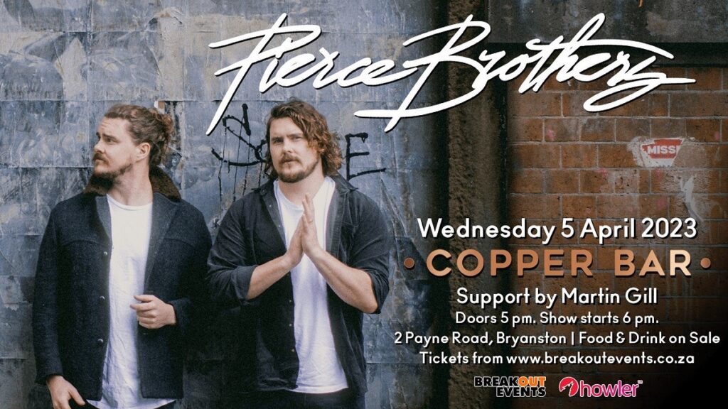 Australian duo and twins, Pierce Brothers, return to SA in April and Joburg fans will be excited to hear that they’ll be performing live at the Copper Bar in Bryanston on Wednesday, April 5th. Tickets are on sale now and available through Howler.