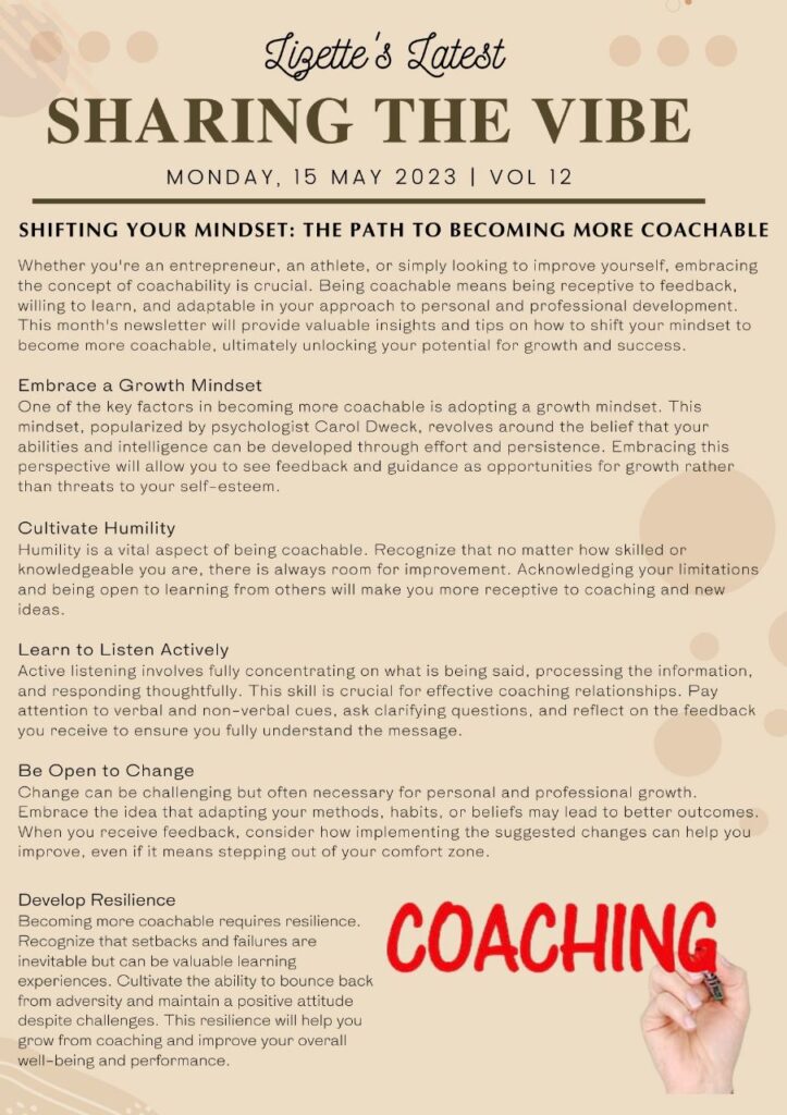 In this issue, we’ll explore ways to combat these obstacles, provide helpful tips on nurturing self-love, growth, and coachability, and share inspiring stories of transformation. We’ll also discuss the importance of cultivating a growth mindset and being receptive to feedback in order to unlock your full potential. So, buckle up and join us as we embark on this life-changing adventure, empowering you to embrace your authentic self and experience the transformative benefits of being coachable.