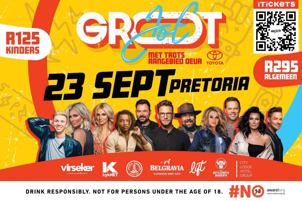 Kom maak die GrootJol in Pretoria vol en wei die lenteseisoen behoorlik in terwyl jy een van die grootste buitelugfeestoere in die land beleef. Wanneer gaan jy weer die kans kry om saam met die land se grootste kunstenaars rugby te kyk?