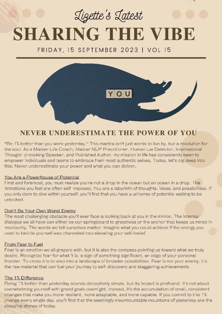 Welcome to this month’s edition of our transformative journey together. I’m thrilled to delve into a topic that’s very close to my heart—the incredible power of being your authentic self. As a Master Life Coach, Master NLP Practitioner, Human Lie Detection expert, International Thought-provoking Speaker, and Published Author, my mission is to guide you toward embracing your true self and the unique qualities that make you, well, you! This month, we’re also excited to announce our online workshop, “Finding Me,” designed to help you uncover your deepest values, desires, and talents. Remember, the journey to transformation begins with a single step, and there’s no better time to take action than now. As I always say, strive to be just 1% better than you were yesterday, and imagine the possibilities that unfold. So let’s get started on unlocking the incredible potential that lies within each and every one of us.