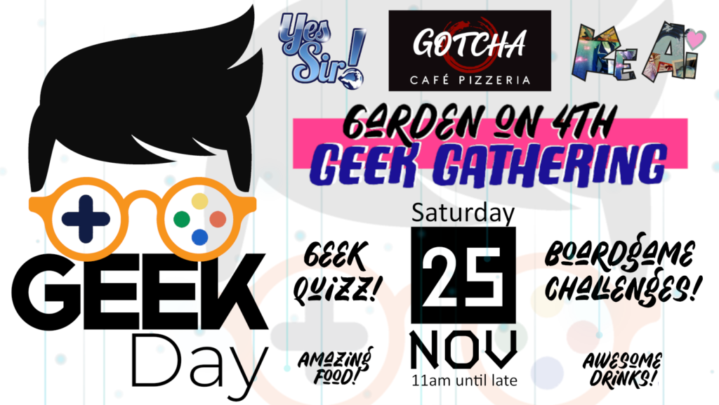 After two successful gatherings in September and October, Gotcha Pizzeria, Yes Sir! Events, and Ke Ai are thrilled to announce its third Geek Gathering at Garden on 4th in Linden.