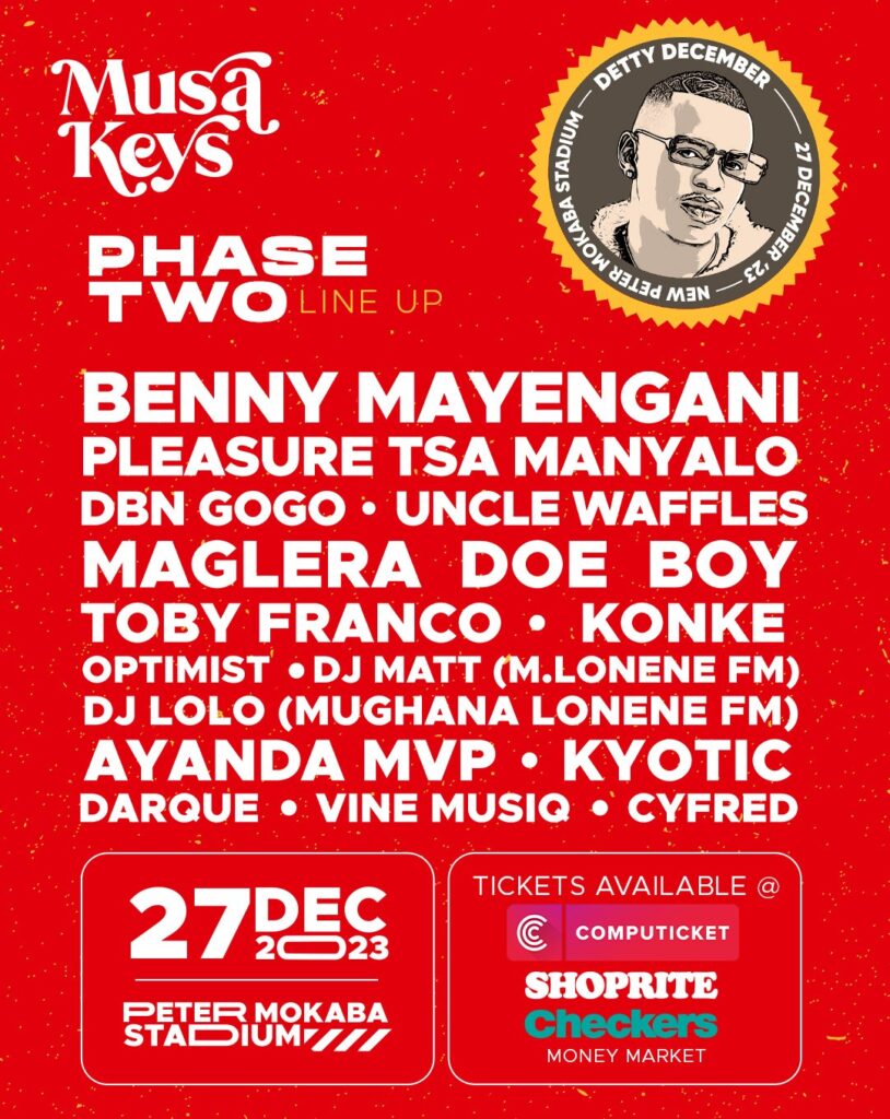 The beat is set, the stage is ready, and the lineup is giving! Brace yourselves for a musical rollercoaster as Musa Keys, the Limpopo hometown hero, gears up to bring the heat with the inaugural Detty December festival. Musa Keys’ Detty December festival today released its entire lineup for the inaugural edition of Detty December, just in time for Black Friday.