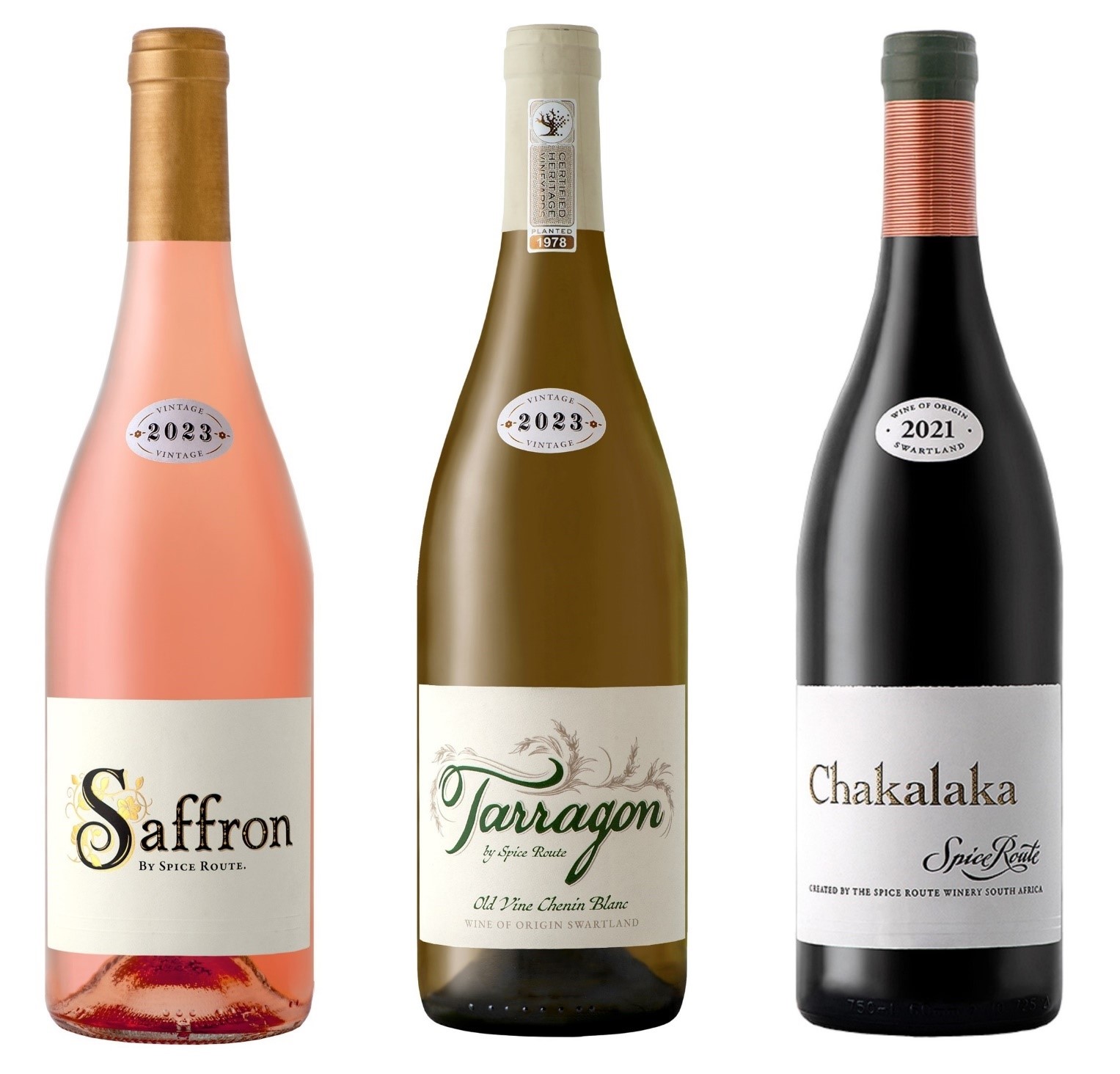 Saffron Rosé 2023, Tarragon Old Vine Chenin Blanc 2023 and Chakalaka Rhône-Style Red Blend 2021