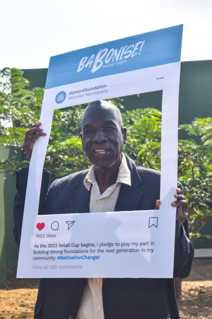 Men in Nkomazi are invited to sign the BaBonise pledge, committing to be exemplary caregivers, role models, and playmates for young children. The pledge, prominently displayed at the tournament’s stadiums, emphasizes the creation of safe, nurturing community environments where children can thrive. At these stadiums, spectators can also connect with their local BaBonise ambassador, easily identifiable in BaBonise gear, to learn more about available local and national support for social fathers.