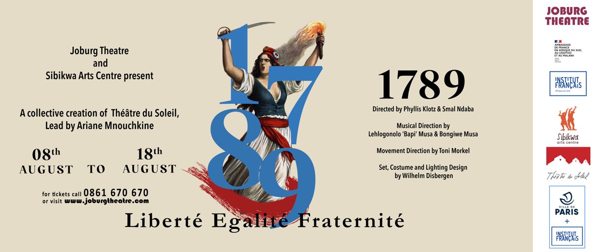 Joburg Theatre in association with the Sibikwa Arts Centre is proud to host the acclaimed production, “1789”, for a short season in August. Supported by Théâtre du Soleil and the French Institute of South Africa (IFAS), “1789” played to sold out performances at the National Arts Festival, received several Naledi nominations and won the Naledi Award for Innovation in Theatre