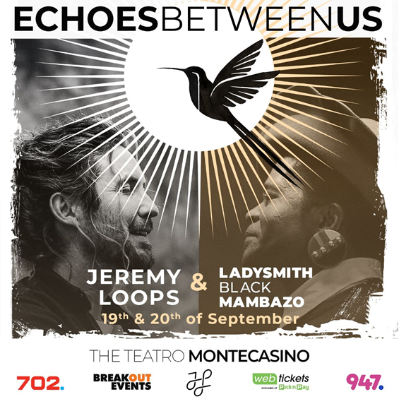 Presented by Breakout Events and Jeremy Loops, in association with 947 and 702, “Echoes Between Us” is a powerful, once-in-a-lifetime musical conversation between two of South Africa’s most celebrated acts. With Jeremy Loops’ genre-blending folk-pop sound and the timeless, Grammy-winning harmonies of Ladysmith Black Mambazo, the show transcends style and generation, offering something truly unique to fans of South African music.