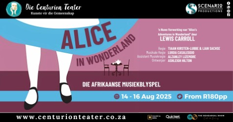 An imaginative, Afrikaans musical reimagining of Lewis Carroll’s classic tale—filled with whimsical charm, heart, and a celebration of curiosity.
