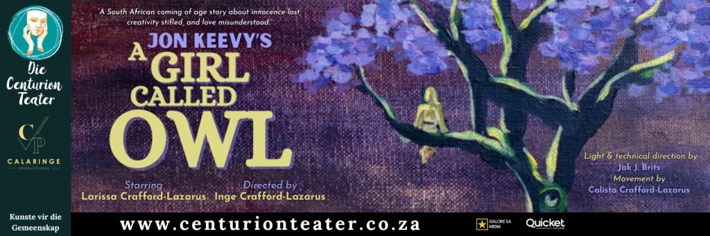 This September, Calaringe Productions brings Jon Keevy’s acclaimed A Girl Called Owl to the Centurion Teater for four captivating performances, after an earlier season at the Wilge Teater and the Ramolao Makhene Theatre at the Market Square Complex.