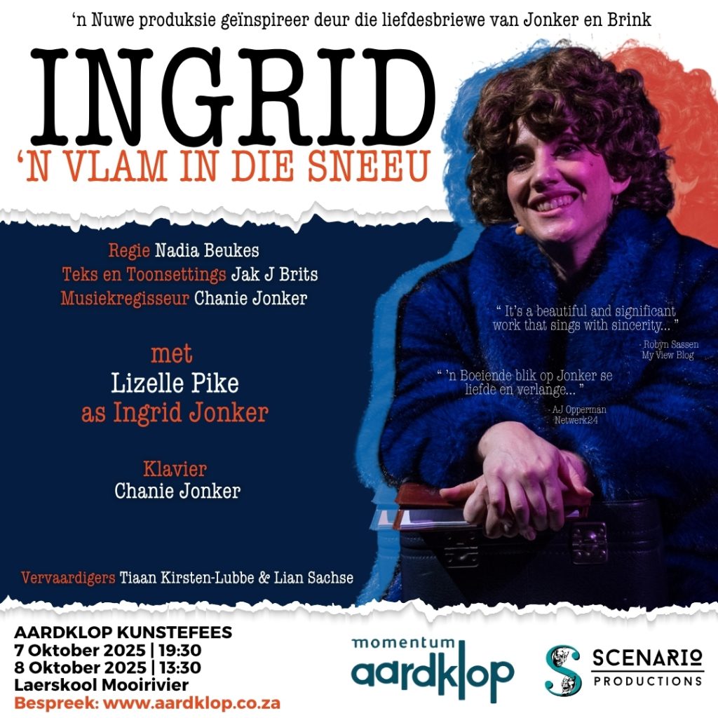“With every performance, it feels like Ingrid’s voice shines brighter, and the more people experience her story, the more it dawns on us that this story needs to be heard nationwide. We look forward to moving Aardklop’s audiences with this work.” — Lian Sachse, Co-Producer and Co-Director.