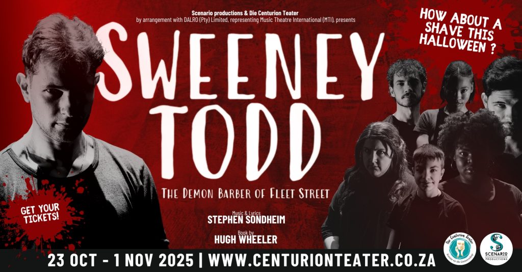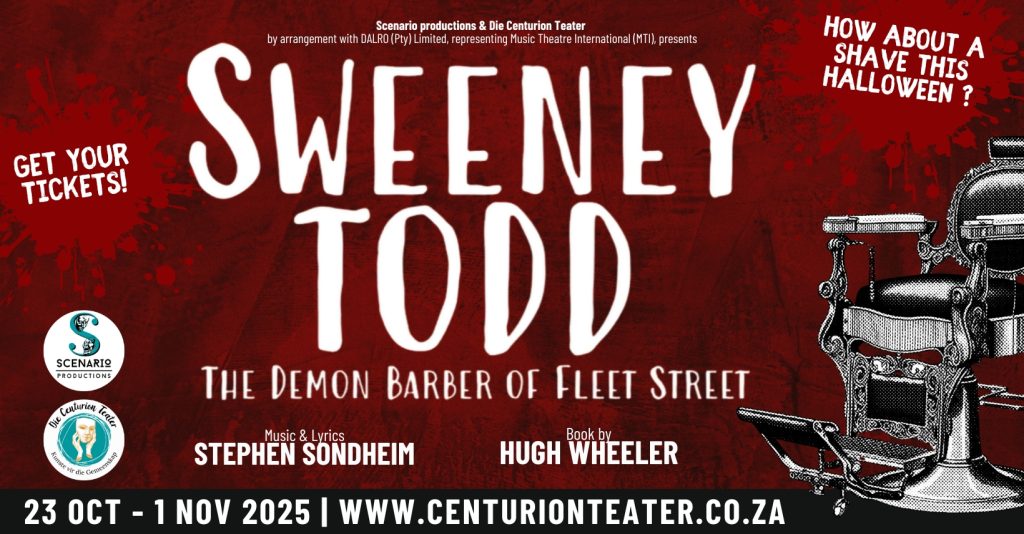 This Halloween season, Scenario Productions, in proud partnership with Die Centurion Teater, invites the brave and the bold to step into the blood-soaked world of Stephen Sondheim’s hit musical thriller Sweeney Todd – The Musical. Running from 23 October to 1 November 2025, this world-class immersive theatrical event promises thrills, chills, and a taste of the unexpected.