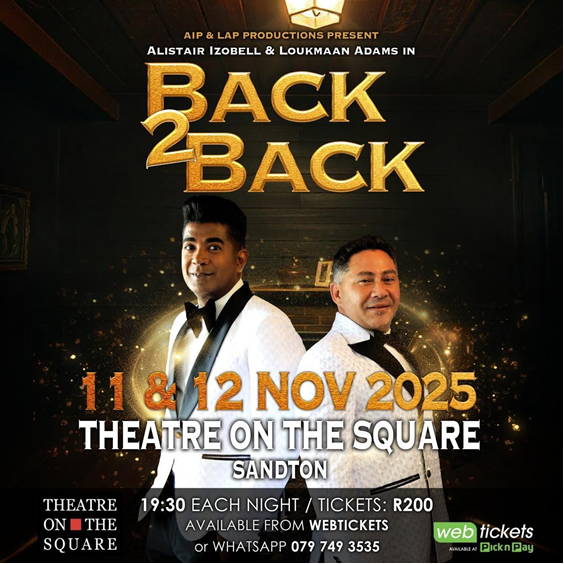 After an overwhelming response to Johannesburg performances, Back to Back returns for 2 nights only. After a 42-year friendship and working relationship, Alistair and Loukmaan reflect on these two parts of their journey and accept that life is a little bit different being older.