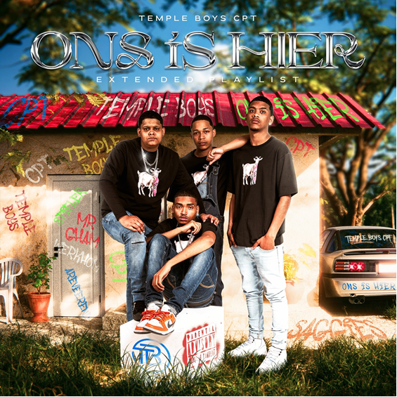 On Ons is Hier, Temple Boys CPT pull listeners into a deep, celebratory journey of pride, community, and defiance. Though they stay rooted in the pulsating rhythms of Gqom with the chest-beating, dancefloor-ready sound of the Cape Flats, their artistry transcends convention. The album features collaborations that underscore their hard-earned respect in the national scene, including an appearance from Professor, the legendary, award-winning kwaito artist whose legacy bridges generations.